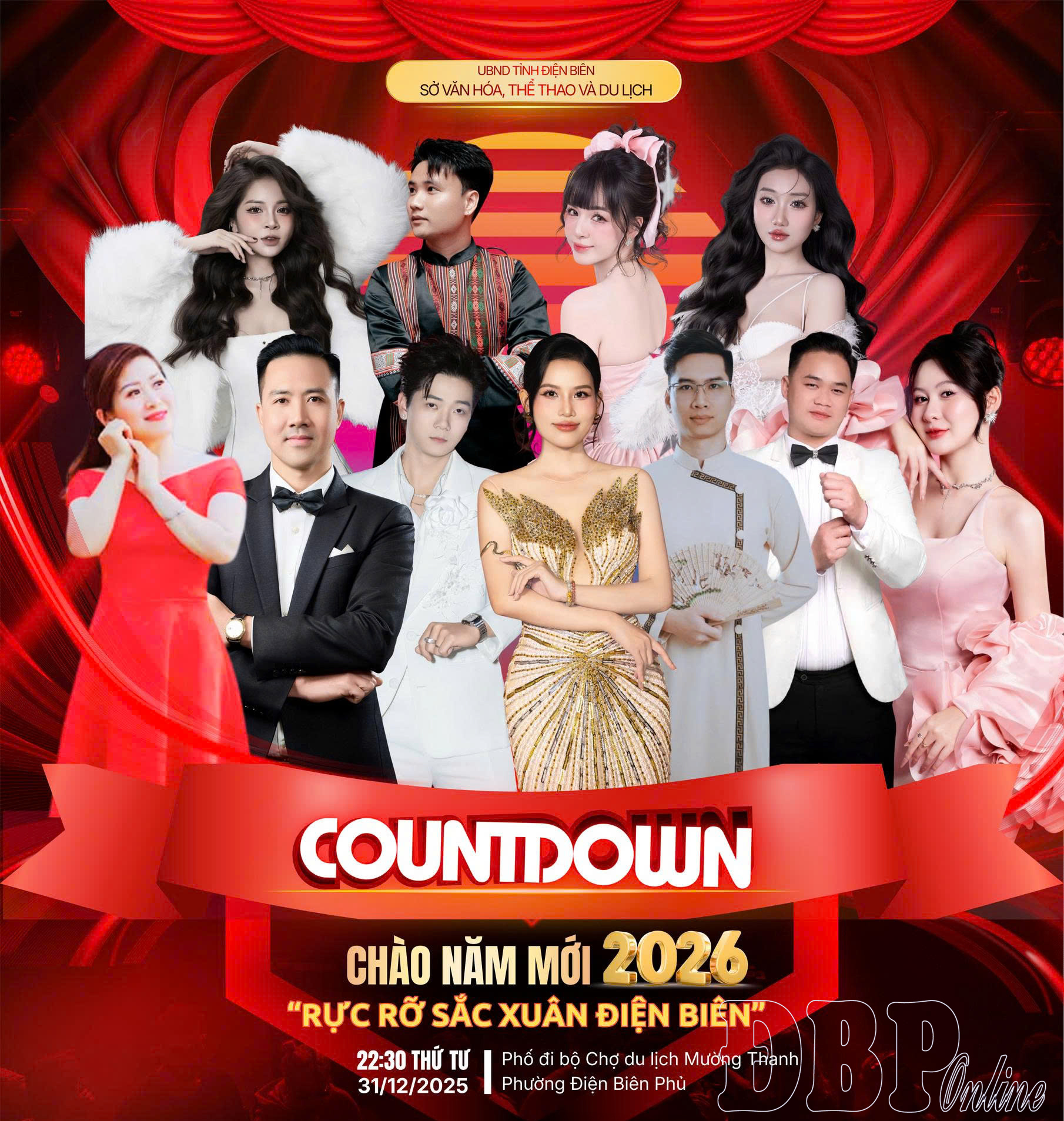 Điểm nhấn nổi bật nhất trong chuỗi hoạt động chào năm mới là sự kiện âm nhạc đặc biệt Countdown Concert và màn pháo hoa - “Rực rỡ sắc xuân Điện Biên 2026”, do Sở Văn hóa, Thể thao và Du lịch (VHTT&DL) tổ chức. Chương trình diễn ra vào tối 31/12/2025 tại Phố đi bộ Mường Thanh - không gian văn hóa, giải trí mới của người dân phố núi, được “đánh thức” bằng âm nhạc, ánh sáng và sắc màu lễ hội.