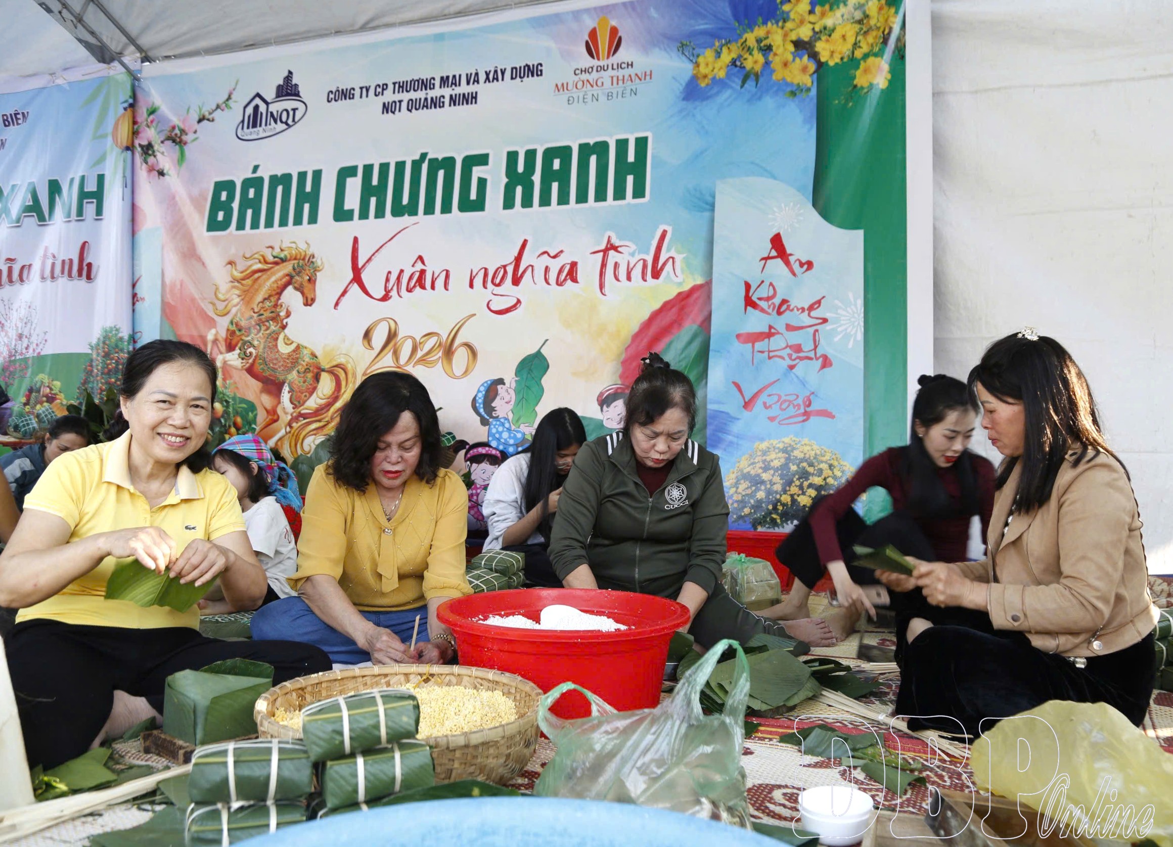 ĐBP - Chiều 30/1, tại Chợ Du lịch Mường Thanh, Công ty Cổ phần Thương mại và Xây dựng NQT Quảng Ninh phối hợp với Câu lạc bộ Nữ doanh nhân, Câu lạc bộ Đam mê khiêu vũ thể thao cùng các mạnh thường quân tổ chức chương trình “Bánh chưng xanh - Xuân nghĩa tình”.