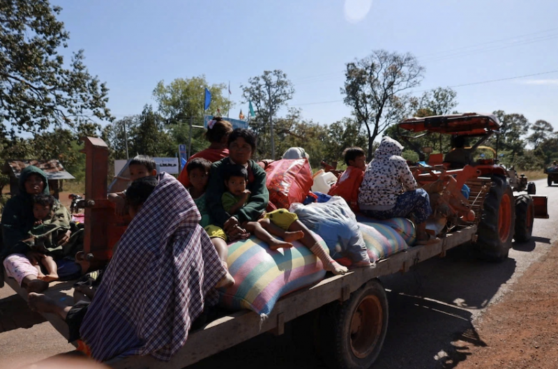 Người dân sơ tán khi cuộc đụng độ giữa Thái Lan và Campuchia xảy ra ở biên giới hôm 8/12 Ảnh: Reuters
