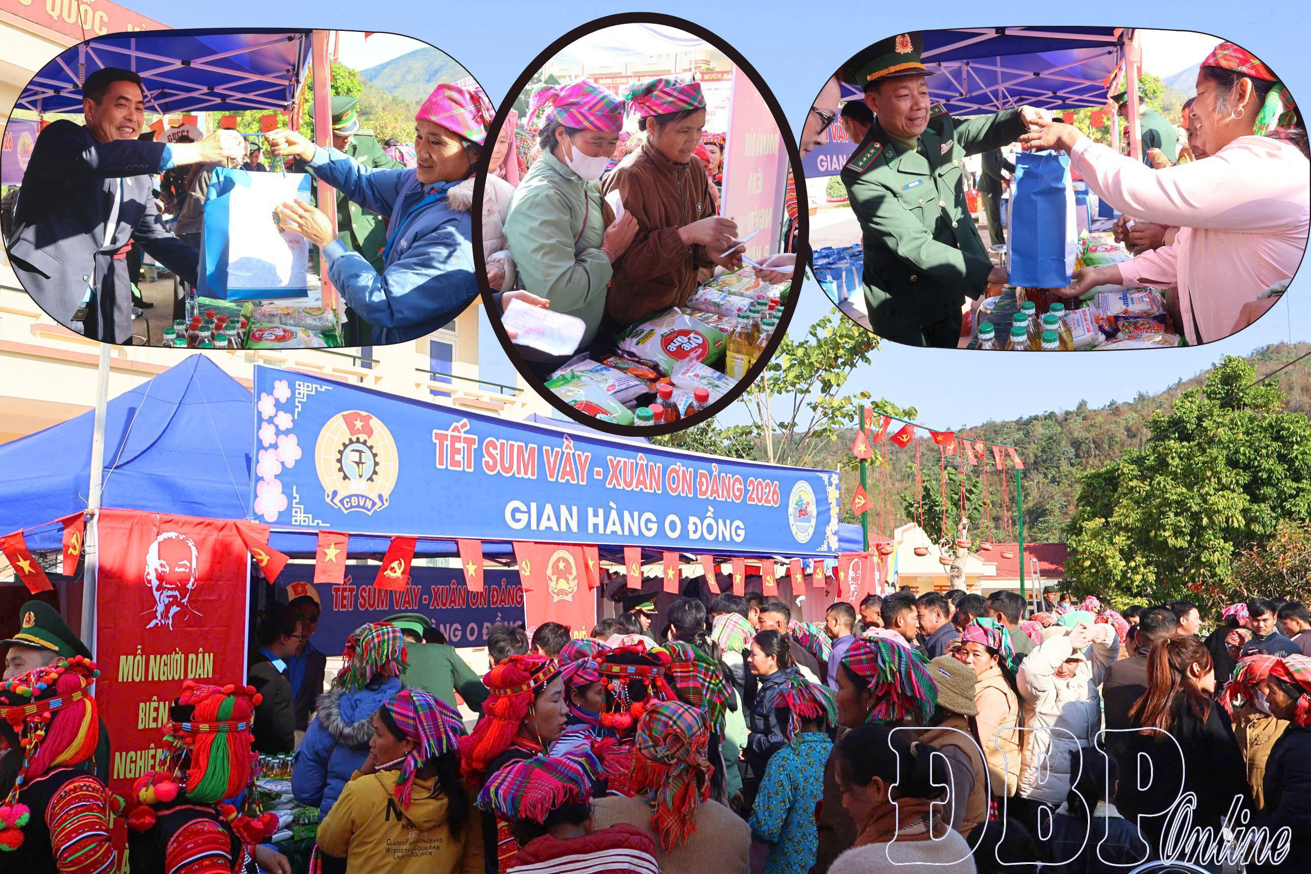 “Gian hàng 0 đồng” nằm trong khuôn khổ ngày hội là điểm thu hút đặc biệt của chương trình năm nay. Không có những tấm biển giá cả, gian hàng đặc biệt chỉ có những nụ cười và sự tận tâm của các cán bộ, chiến sĩ. 186 suất quà là các nhu yếu phẩm thiết yếu, từ gạo, dầu ăn, nước mắm đến các mặt hàng phục vụ ngày Tết đã được trao tận tay người dân.