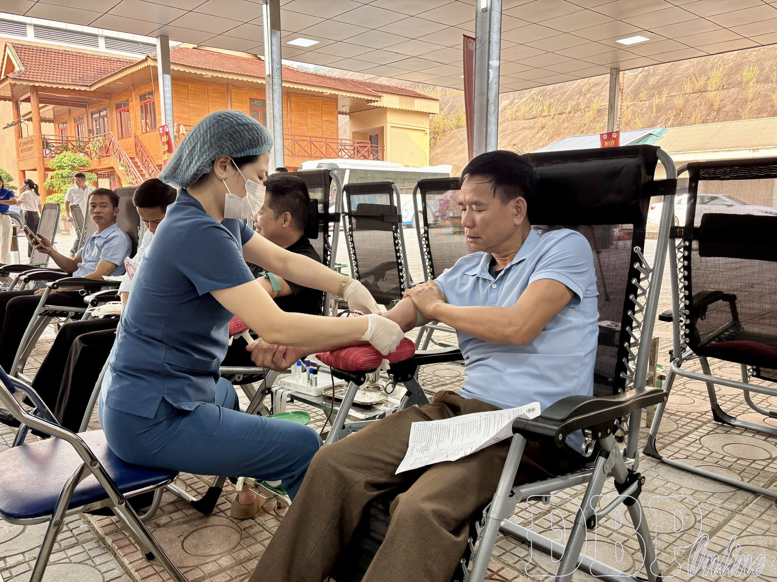 Công chức, viên chức phường Mường Lay tham gia hiến máu tình nguyện.